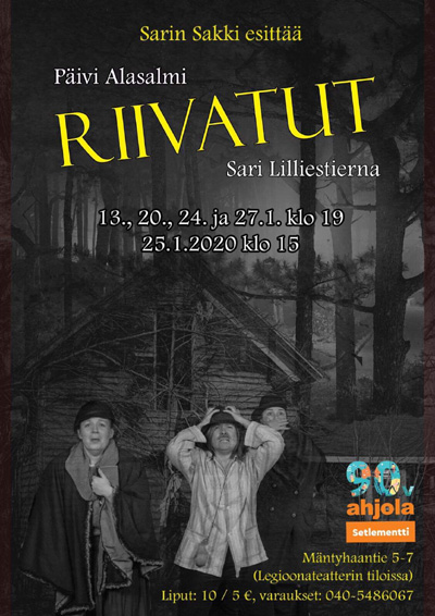 Räyhähenki riivaa Lauhan torppaa Sunilan kylässä Ylöjärvellä vuonna 1891. Keuhkotautinen piika Hertta joutuu myrskyn silmään. Koko kylä kerääntyy kummastelemaan torppaan järjen yli käyviä, selittämättömiä tapahtumia. Pian Piru vie ensimmäisen kuolonuhrinsa, eikä kukaan ole turvassa kostonhimoiselta räyhähengeltä. Riivatut kertoo ihmisistä, joita riivaa intohimo, kostonhimo ja kunnianhimo. Mutta kaikkein suurin mahti on rakkaus. Perustuu tositapahtumiin. 2019, kantaesitys Ahjolan näytelmäryhmä Sarin Sakki 2020 |
